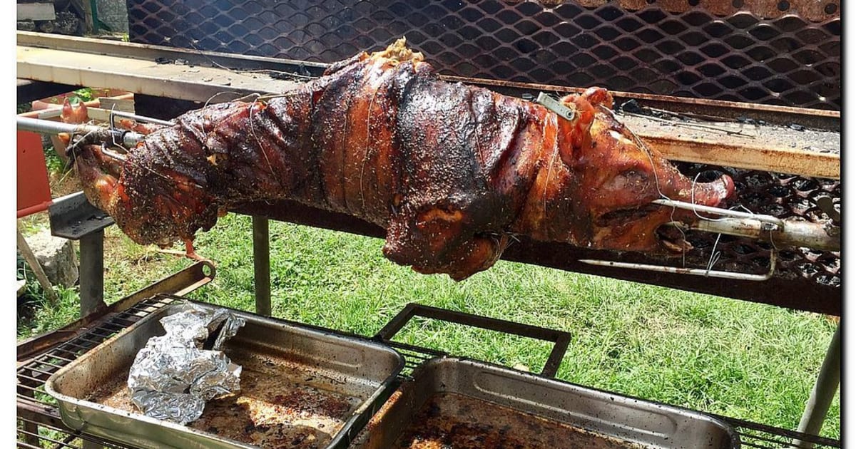 Ou Cochon rôti Tournebroche, sauce au miel