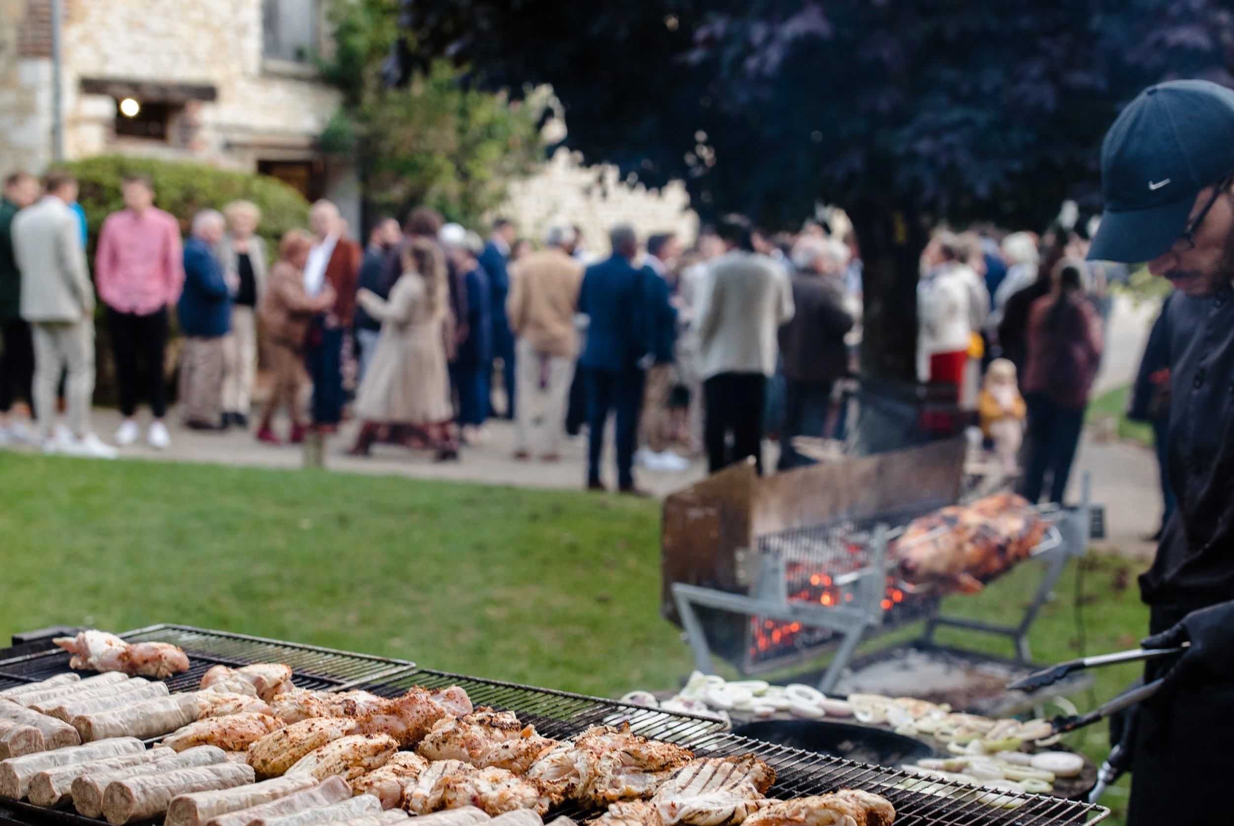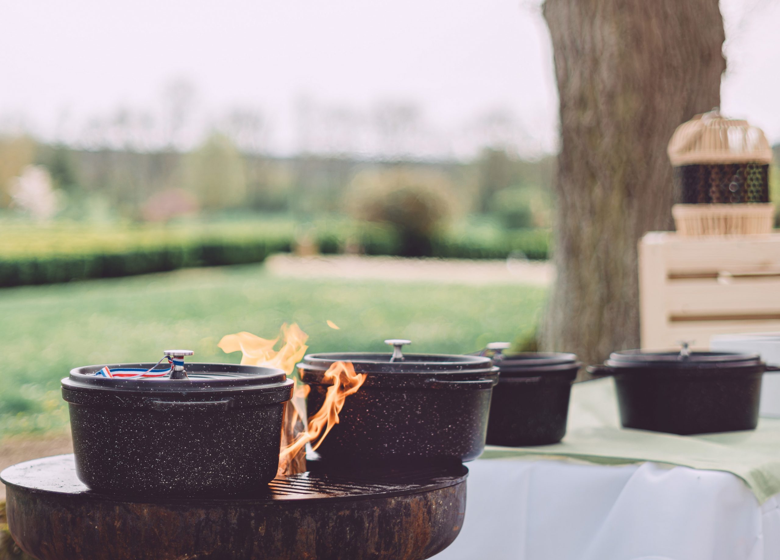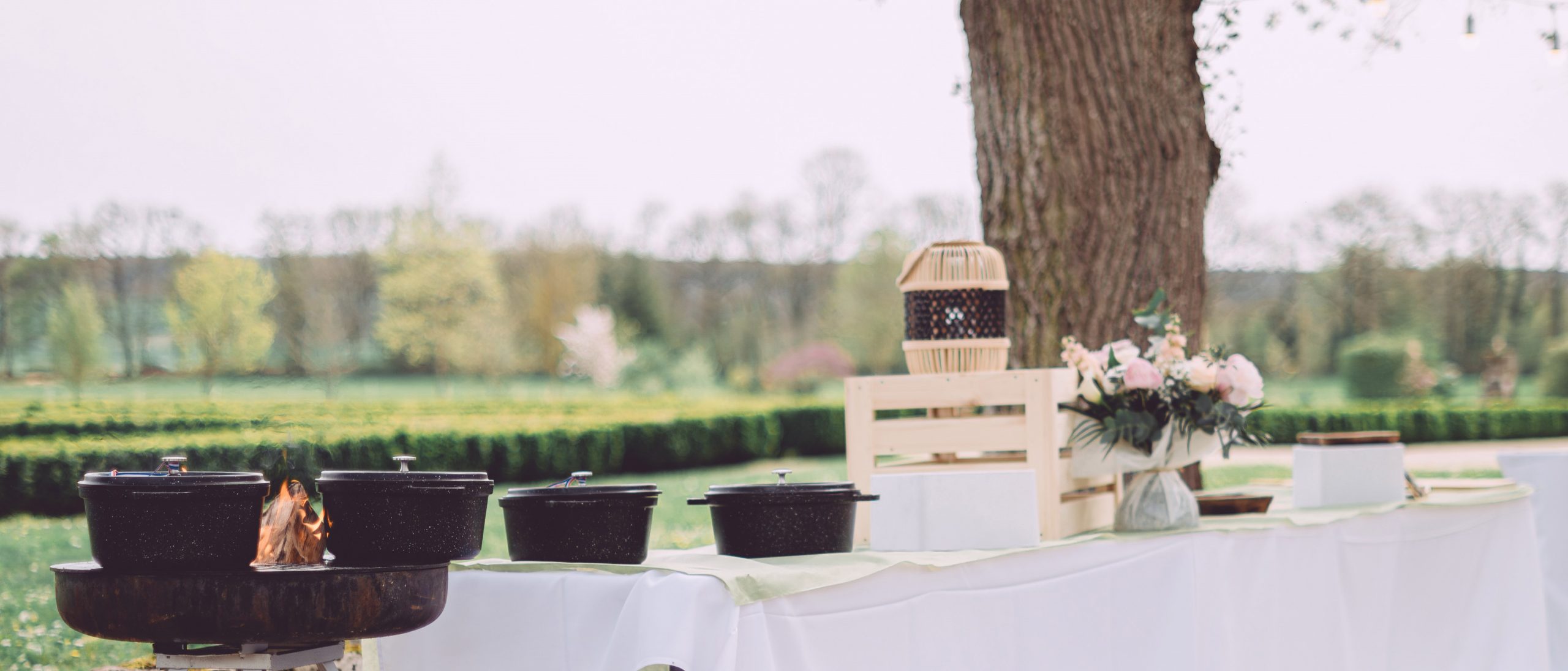 Puis vos invités découvrent leur jolies tables fleuries pour savourer l’original barbecue, le cochon à la broche ou votre plat du terroir en cocotte en fonte.