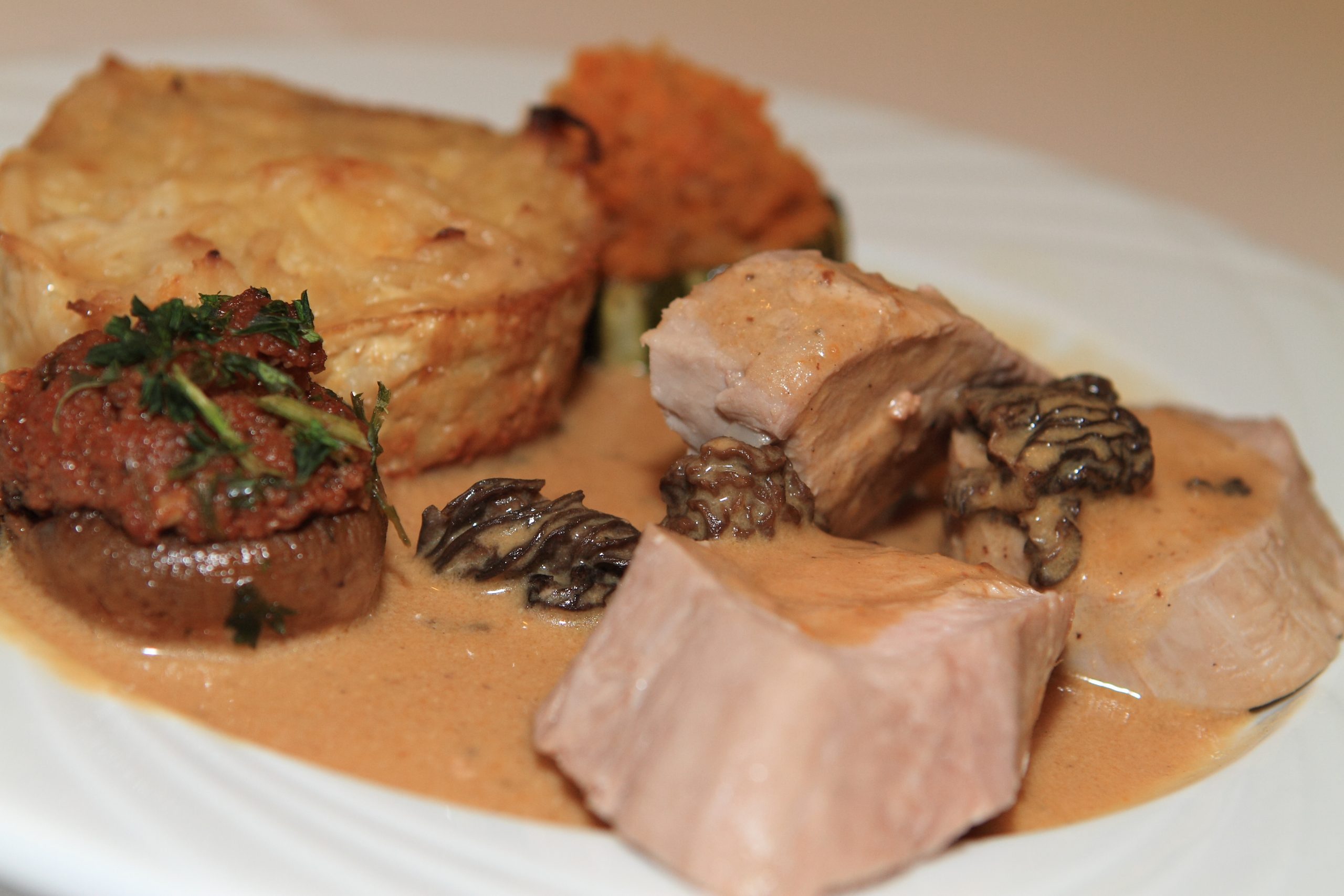 Médaillon de filet mignon en crémée de morilles, Gratin fondant