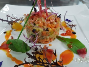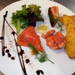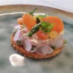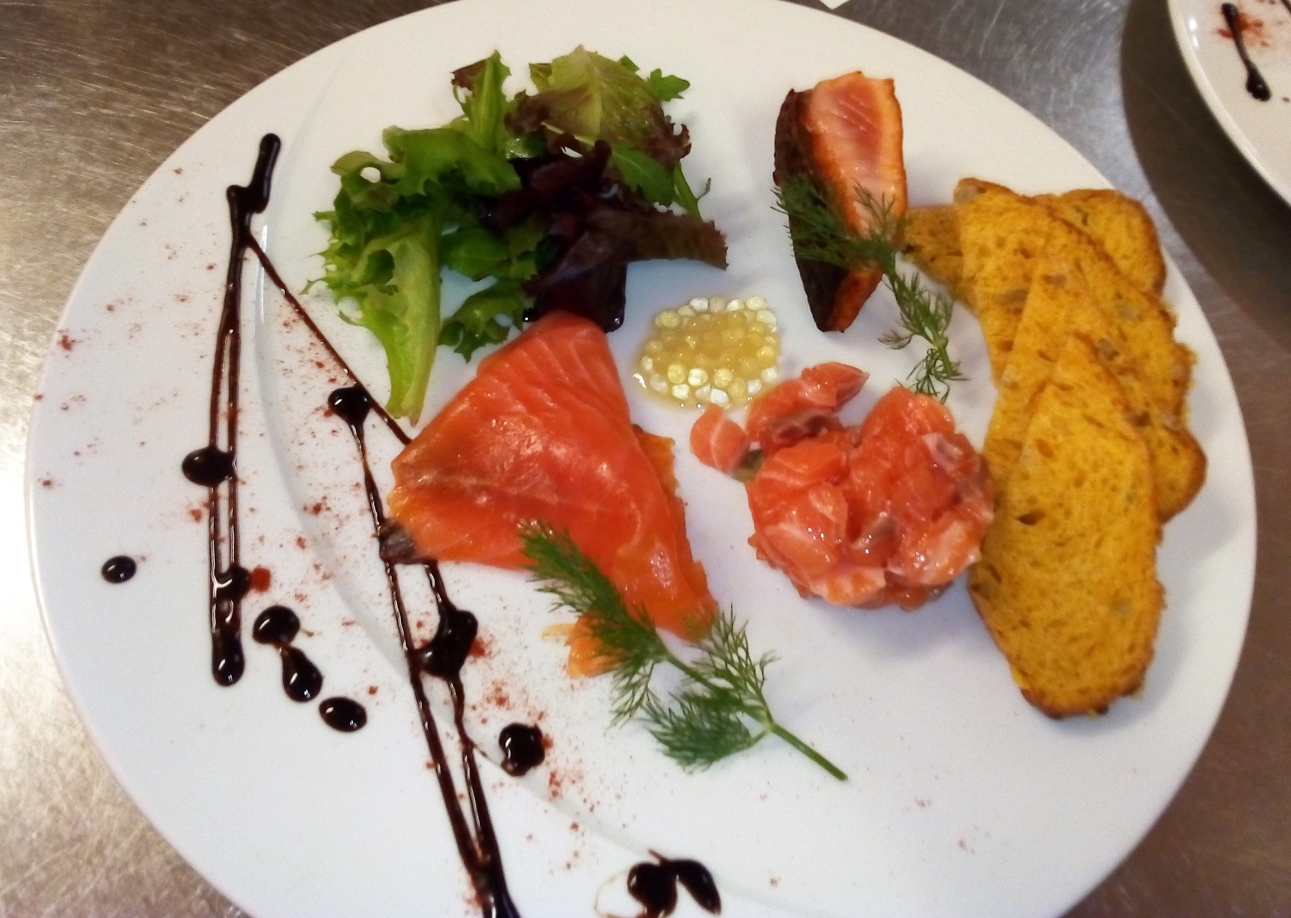 Croustillant mousseline de saumon fumé à l’aneth et ses légumes locavores aux herbes fraîches.