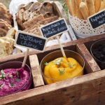 Brochette cerise brebis – Piqué de gambas et mangue – Kubik de saumon au sésame – Carpaccio de Saint-Jacques aux agrumes – Wrap saumon fumé et wasabi –  Buns végétariens – Nordique saumon fumé Tzatzíki – Navette viande des Grisons – Gougère champignon chaource