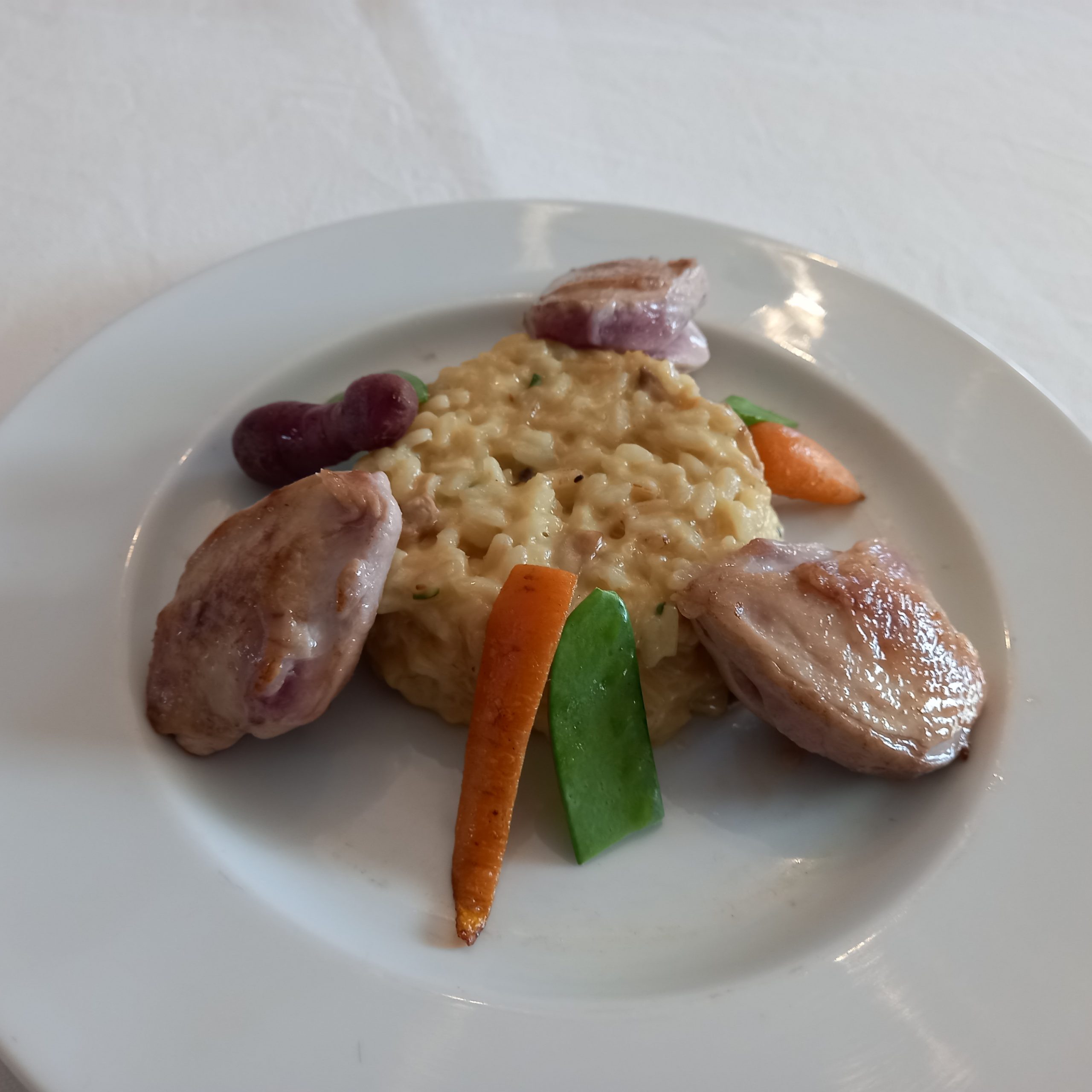 Risotto crémeux au chaource et ses filets de caille juste rôtis.
